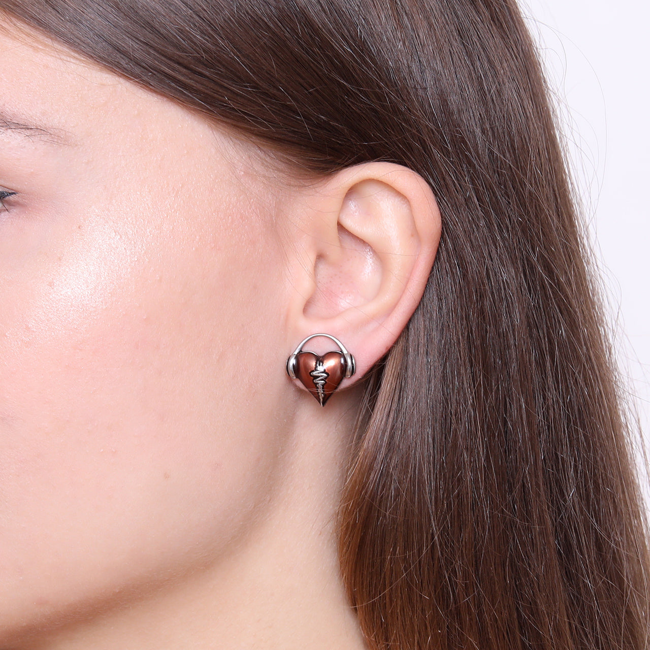 The Heartbeat earrings were made for all of the music lovers out there. Made of stainless steel, the Heartbeat earrings feature two tiny hearts, which are colored with red epoxy. These chic earrings even come with tiny headphones for a more upbeat look. Add more rhythm and style to your ensemble by matching these cool earrings with our Heartbeat necklace. 316L Stainless Steelwith red epoxy Pouch included Size: W: 0.69" H: 0.75"